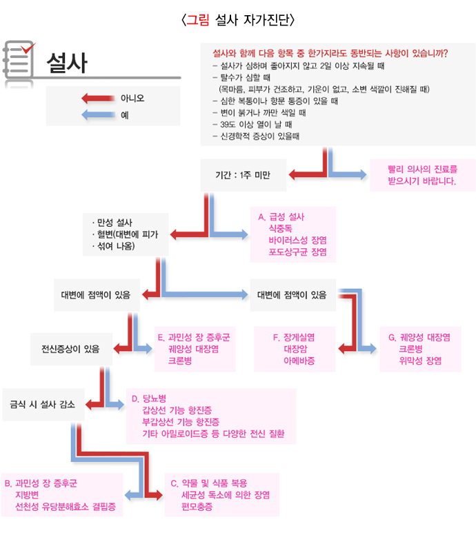 대부분의 설사는 며칠 내에 저절로 해결되지만 설사로 인한 탈수와 체중 감소가 며칠 내에 해결되지 않거나, 만성적이거나 기능성 설사인 경우에는 의사의 정확한 진단과 치료가 필요합니다.