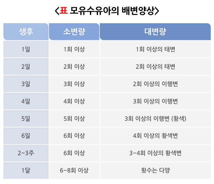 정상적인 신생아의 대소변 기준은 다음과 같습니다.