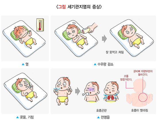 - 나이가 어릴수록 세기관지의 지름이 작기 때문에 증상이 심할 수 있습니다.
