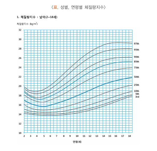 (1) 체질량지수(BMI)가 성별 및 연령에 비교하여 95백분위수 이상인 경우