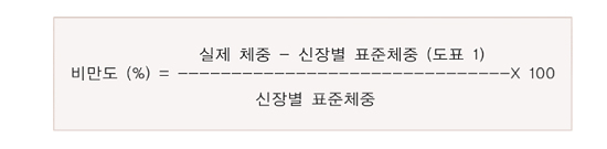 신장, 성별에 비교한 체중이 95백분위수 이상이면 비만으로 간주합니다.