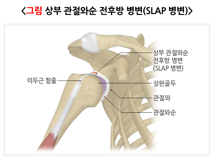 2) 상부 관절와순 전후방 병변(Superior labrum from anterior to posterior lesion, SLAP 병변)