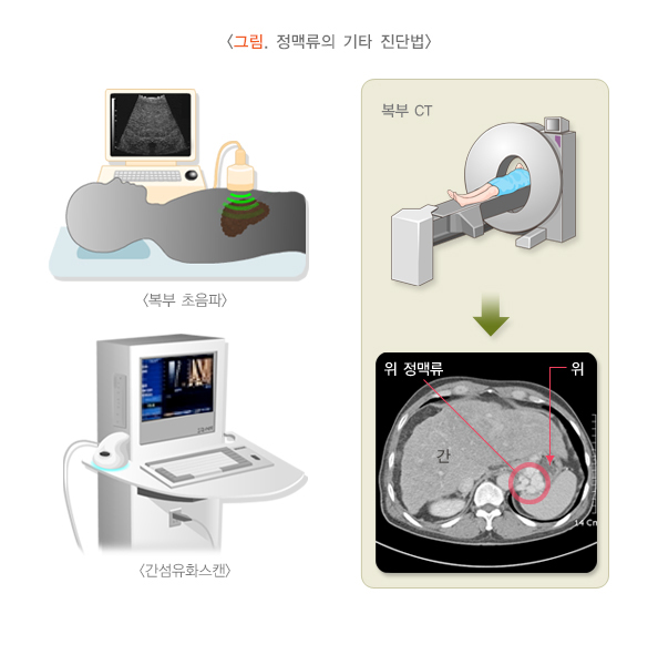 위내시경 검사는 정맥류를 진단하는 가장 보편적인 방법입니다. 간 기능 여부에 따라서 수면 내시경 검사를 시행 할 수도 있지만 황달, 복수, 간성 혼수가 있는 경우에는 수면 내시경 검사를 시행하기 어렵습니다.