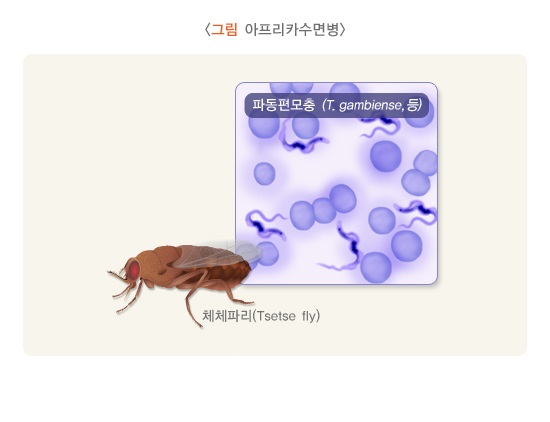 아프리카수면병은 감비아파동편모충(Trypanosoma gambiense) 또는 로데시아파동편모충(Trypanosoma rhodesiense) 감염에 의한 질환입니다.