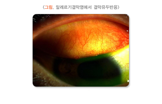 결막부종과 충혈을 감소시킬 목적으로 혈관수축제를 사용하기도 하는데, 약제에 의존이 되고 반동현상이 나타날 수 있어 반드시 안과 전문의에 의한 정기 진료를 받아야 합니다.