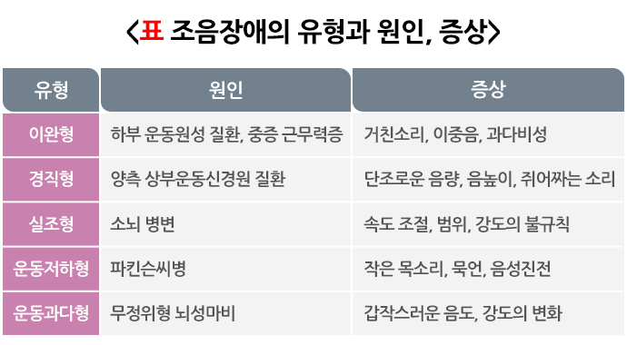 • 운동저하형: 지연청각 피드백, 목소리 증진시키는 음성치료