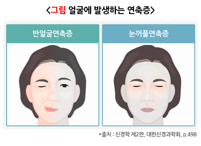 눈꺼풀연축은 눈가 주변 근육이 저절로 수축이 일어나서 눈이 감기는 것으로, 짧은 시간 동안 반복적으로 나타나기도 하고 때로는 장기간 지속적으로 나타나기도 합니다. 눈둘레근의 연축성 수축 현상이 일어날 때 앞이마 근육이나 눈가 아래 얼굴 근육에도 수축 현상이 동반되기도 합니다.
