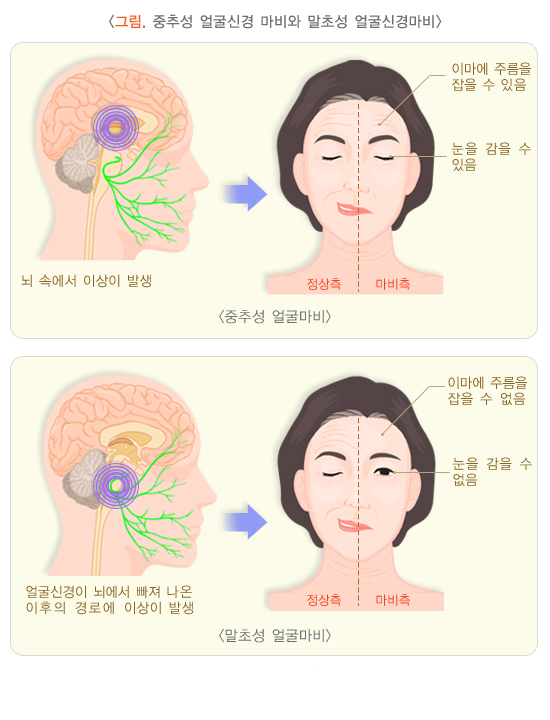 다른 원인에 의한 말초성 안면마비의 경우 원인 질환을 치료해야 합니다.