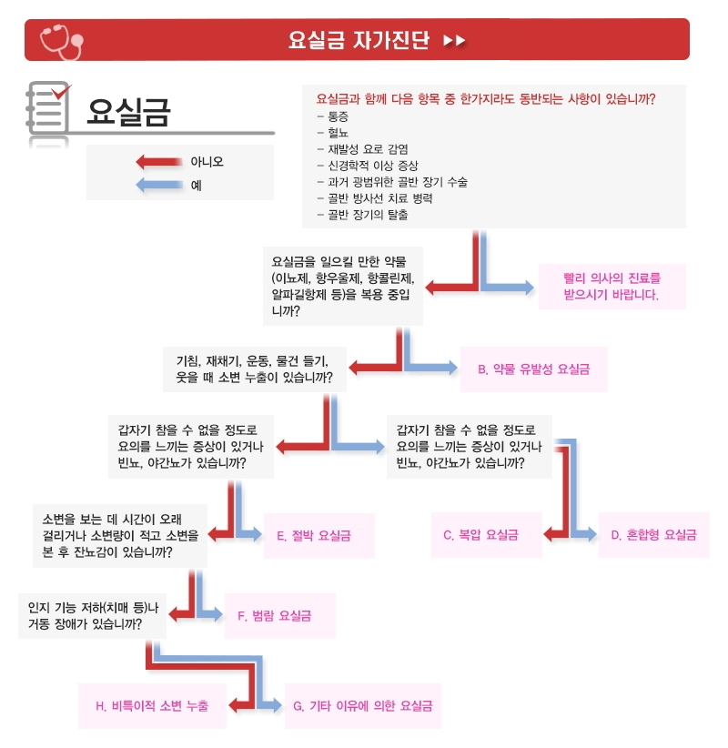요실금 종류에 따라 원인과 병태생리가 다르기 때문에 구별이 필요합니다.