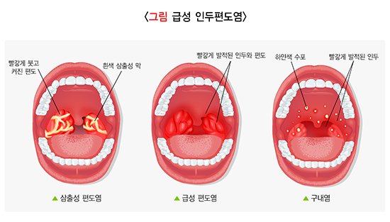 원인에 따라 크게 바이러스성과 세균성으로 나눕니다. 감기에 속하는 바이러스성 인두편도염은 항생제를 쓰지 않아도 대증요법으로 치료가 됩니다. 하지만 세균성 인두편도염(그룹 A 연쇄상구균이 가장 대표적)은 항생제 치료를 해야 빨리 호전되고, 합병증을 예방할 수 있습니다.