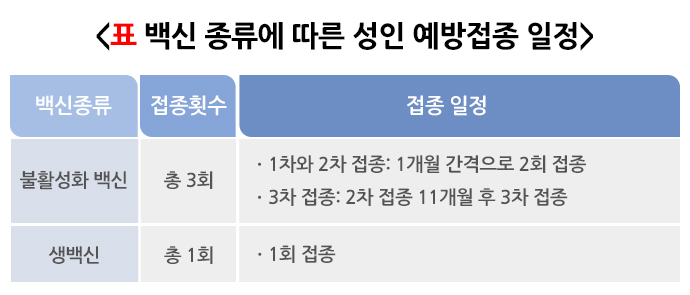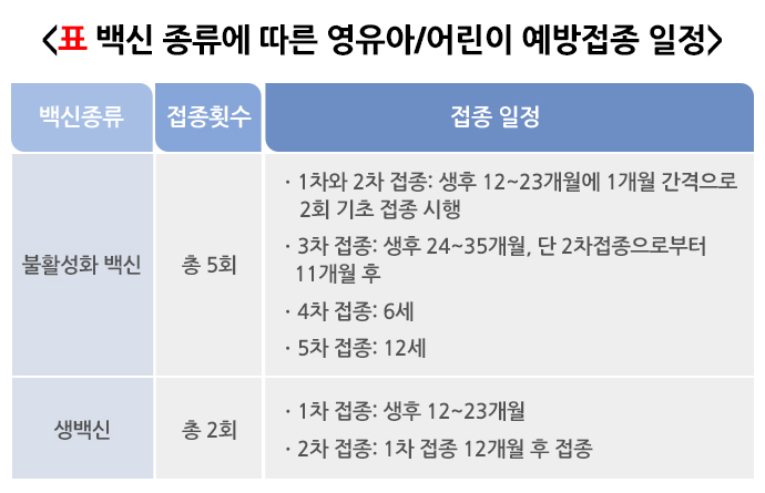 ③ 우리나라는 일본뇌염이 유행하는 지역이기 때문에 가장 효과적인 예방법은 백신 접종입니다. 예방접종 일정은 다음과 같습니다.