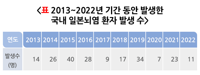 질병관리청의 자료에 따르면 우리나라에서는 2013~2022년까지 매년 7~40명의 환자가 신고되었습니다.