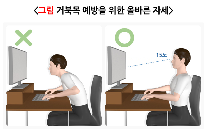 거북목 증후군 예방을 위한 몇 가지 원칙은 다음과 같습니다.