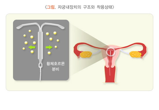 자궁 내에서 지속적으로 황체호르몬을 분비하는 장치로서, 피임 목적으로 개발되었으나 자궁내막증의 통증 조절을 위해 사용될 수 있습니다.