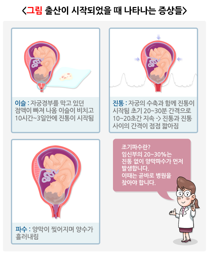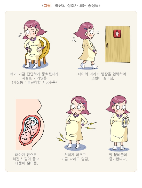 출산이 가까워오면 보통 다음과 같은 증상이 나타날 수 있습니다.