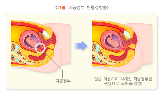 자궁경부 무력증의 수술적 치료방법으로, 자궁경부 원형결찰술(봉축술)이 있으며 이는 임신 12~14주 사이에 주로 시행됩니다. Shirodkar 수술법과 McDonald 수술법이 가장 널리 시술되고 있는 질식 자궁경부 원형결찰술입니다. 수술성공률은 75~90% 정도로 보고되고 있습니다.