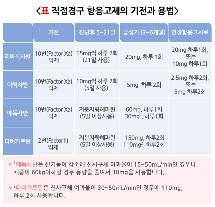 이런 이유로 많은 환자들이 이 약을 처방받습니다. 2013년에 출시된 후로 폐색전증 환자 10명 중 7명 이상이 이 약을 복용합니다. 국내에 출시되어 사용 가능한 약으로는 다비가트란, 리바록사반, 아픽사반, 에독사반 등이 있습니다. 국제 가이드라인의 치료 지침에서는 2016년 이후 새로운 항응고제를 처방약제로 추천하고 있습니다. 덕분에 환자들에게 더 적절한 치료를 제공할 수 있게 되었습니다.