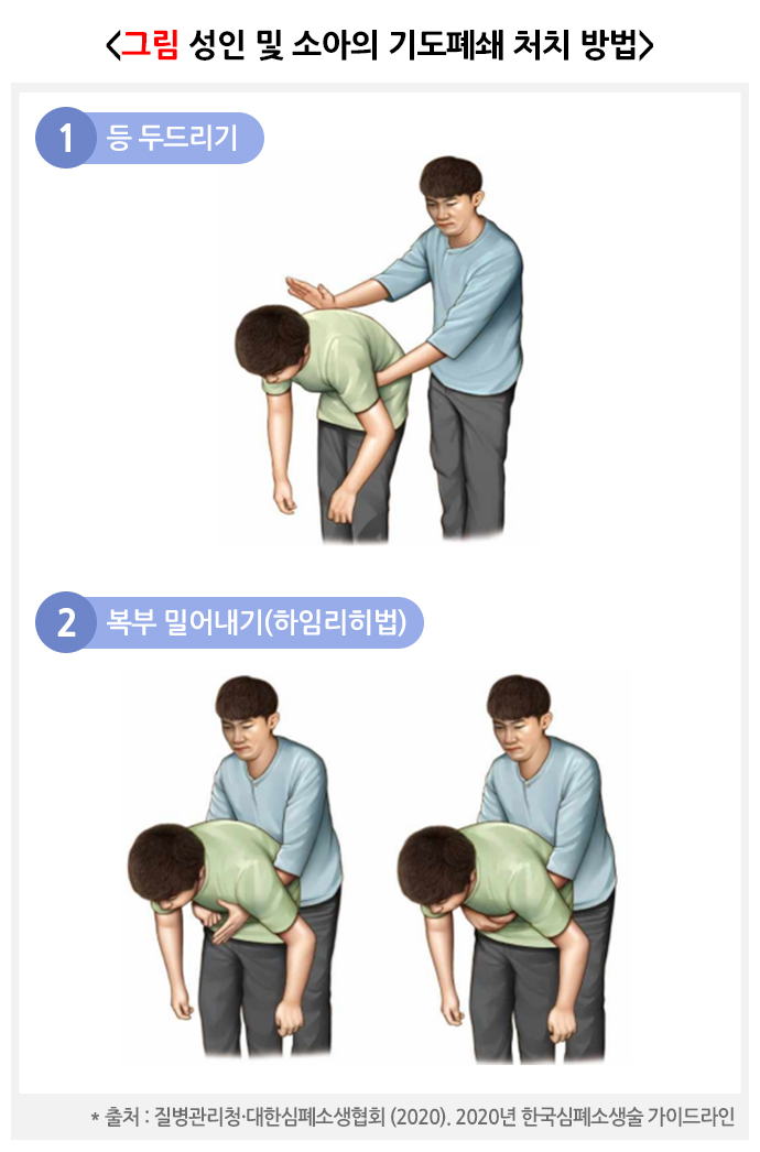 ˚ 막힌 이물질이 밖으로 나와 의식이 돌아온 뒤에는 장기가 손상됐을 가능성이 있으므로 반드시 의료기관을 방문해야 합니다.