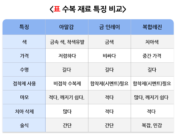 3) 치아와 색깔이 달라서 심미적인 치료가 필요한 부위는 수복이 불가능합니다.