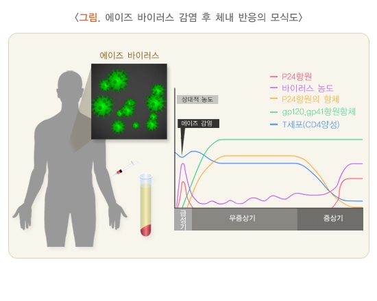 인간면역결핍바이러스(HIV) 감염 초기 2~3주에 혈중 바이러스 항원 검출이 가능하며, 3~4주에 항체가 나타납니다. 최근에는 효소면역측정법이나 화학발광면역측정법을 이용하며 HIV에 대한 항체와 항원을 동시에 검출할 수 있으며, HIV 감염에 대한 선별검사로 이용됩니다.
