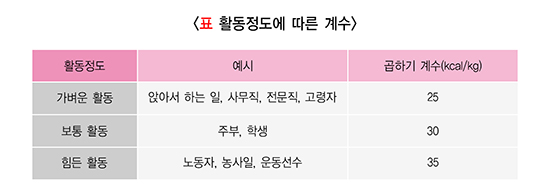 2) 활동량에 따른 적정섭취에너지 구하기