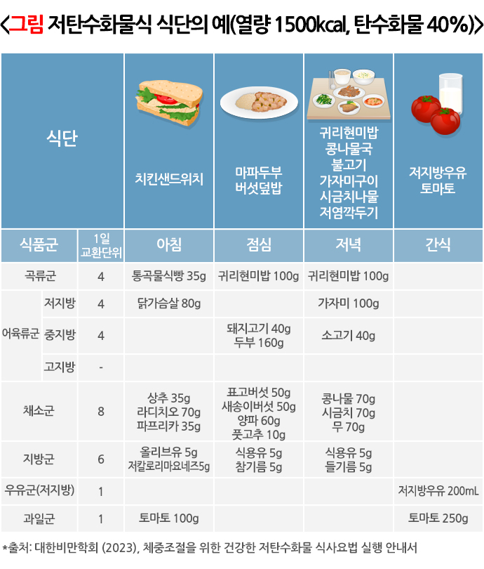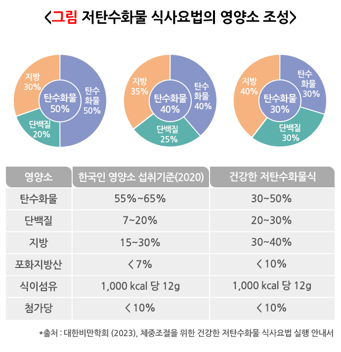 3. 대한비만학회. (2023). 체중조절을 위한 건강한 저탄수화물 식사요법 실행 안내서.