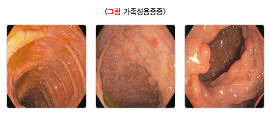 대장 폴립은 대장 점막 표면에서 안쪽으로 돌출된 병변을 말합니다. 대부분 양성으로 마치 피부에 생긴 사마귀나 조그만 혹 모양을 하고 있습니다. 대장 폴립은 대부분 증상이 없으나, 크기가 큰 경우 종종 대변에 피가 섞여 나오거나 혈변을 보는 경우가 있으며, 드물게 장폐쇄를 일으키기도 합니다. 대장 점막에는 통증을 느끼는 신경이 없기 때문에 조직검사를 받아도 해당 부위에 통증은 없습니다.