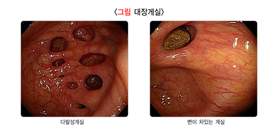 대장게실은 장벽이 바깥쪽으로 동그랗게 꽈리처럼 튀어나온 것을 말하며, 소화관 어느 곳에나 생길 수 있습니다. 대장게실의 원인은 확실하지 않지만 식이섬유가 적은 식사를 하면 대변 양이 줄고 대변을 보기 위해 더 많은 압력을 가하게 되어 장점막이 더 잘 튀어나온다고 생각합니다. 게실은 대부분 그냥 두어도 문제를 일으키지 않습니다. 다만 게실이 있는 쪽의 배가 아프면서 메스껍고 열이 나는 경우 게실염을 의심할 수 있으며, 대변에 피가 나오거나 검은 변이 나오는 경우 게실출혈 때문일 수 있으므로 병원을 방문하는 것이 좋습니다.