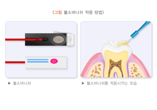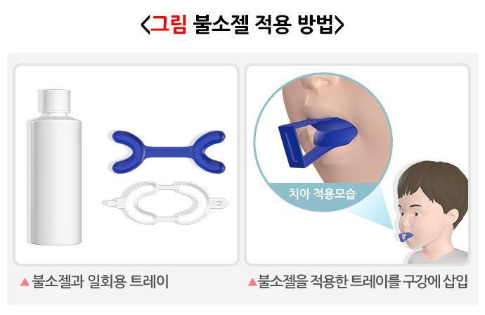 도포방법은 치과의사나 치과위생사가 치아에서 침을 제거하고 건조시킨 후, 전용 솔을 이용해 치아에 매니큐어를 바르듯이 골고루 얇게 바릅니다.