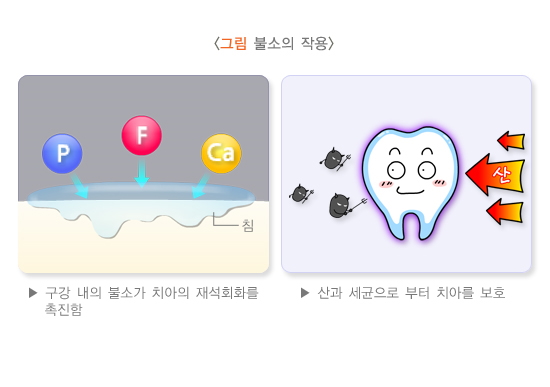 - 불소는 본래 항균 작용이 있어 치아우식을 일으키는 세균의 군집 형성을 방해합니다.