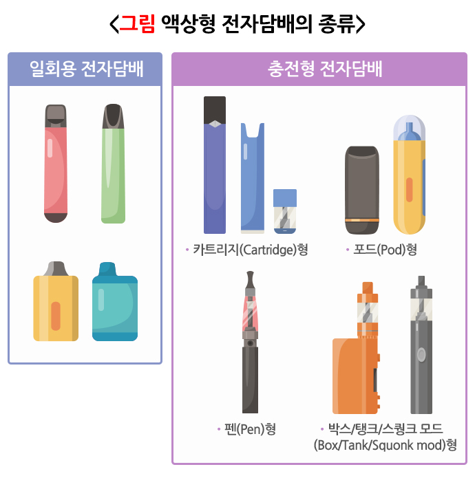 액상형 전자담배는 여러 유형이 있으며, 대표적인 종류는 다음과 같습니다.