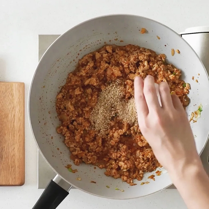 그 위에 부드러우면서 칼칼한 두부장 올려