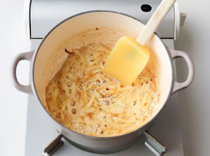 양파를 카라멜라이징으로 10분 정도 볶아주세요.