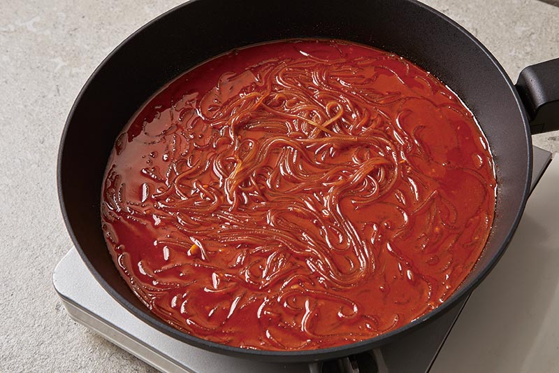 냄비에 물 1컵과 양념장을 넣어 팔팔 끓여주세요.