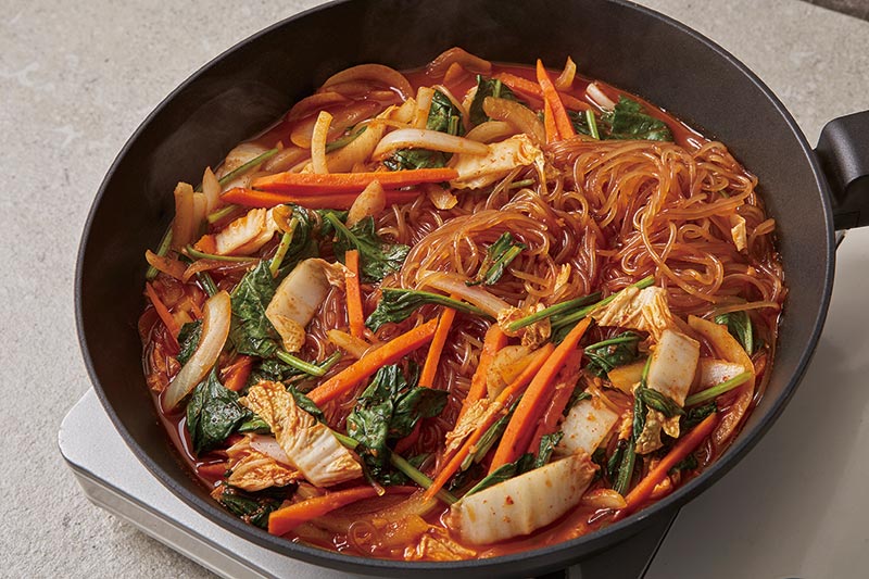 당면이 반쯤 익으면 손질한 채소를 넣고 조금 더 졸여주면 완성~
