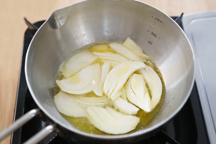 버터가 녹으면 양파를 약불로 천천히 볶아주세요.