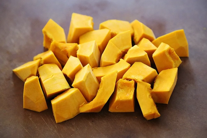 데워진 단호박은 껍질과 씨부분을 제거하고