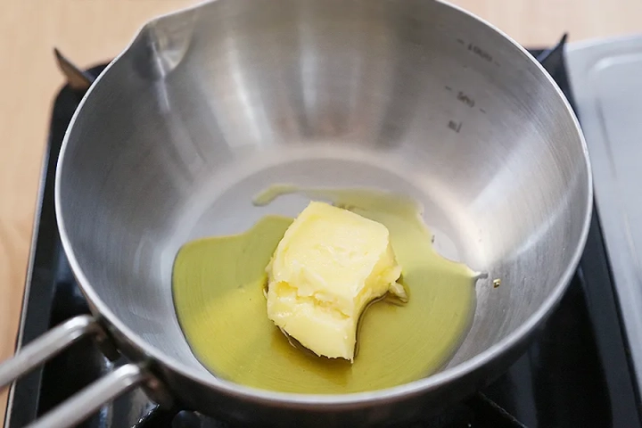 냄비에 올리브유를 살짝 더해 버터를 녹여주세요.