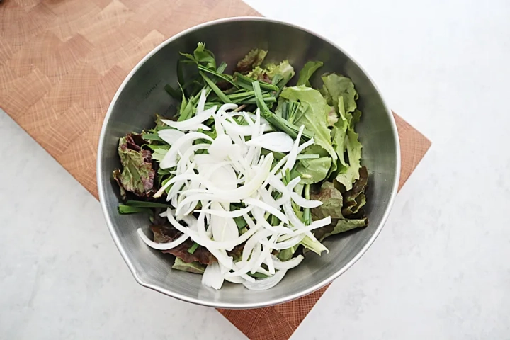 [재료]: 상추 90g, 부추 25g, 양파 1/4개