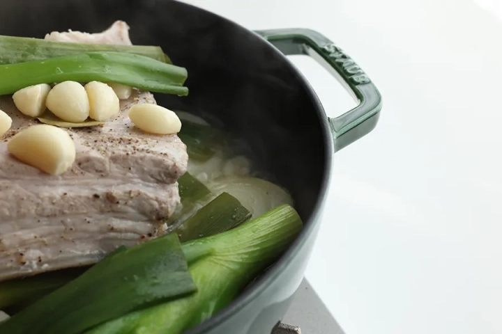 물이 들어가는게 아닌 재료자체의 수분으로 삶는거라