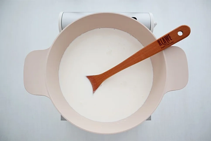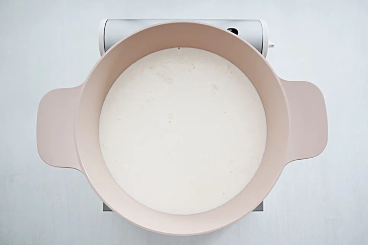 냄비에 우유와 생크림을 2:1비율로 부어주고