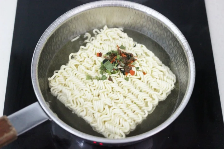 끓는 물에 라면과 후레이크를 넣고 끓여주세요.