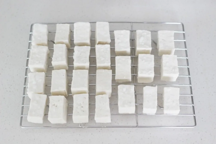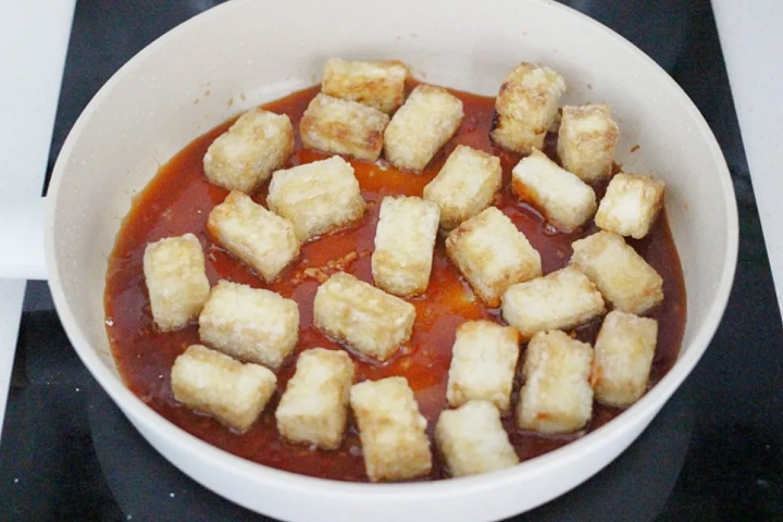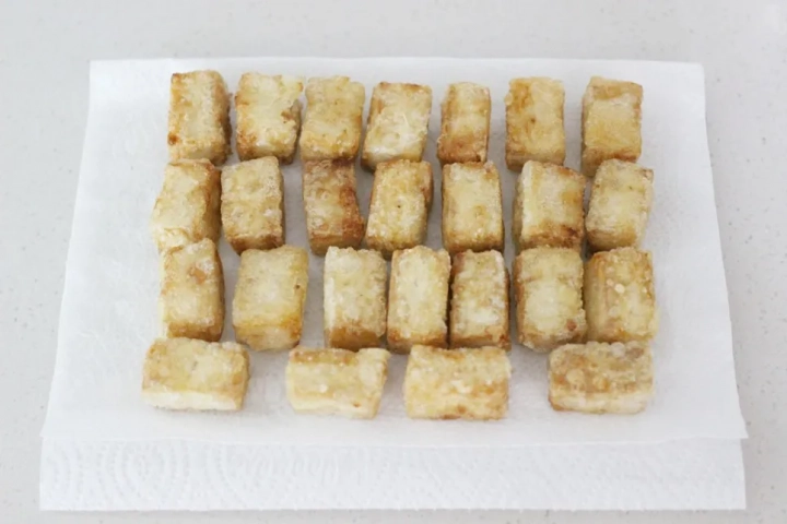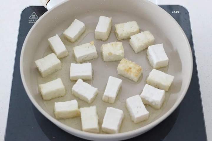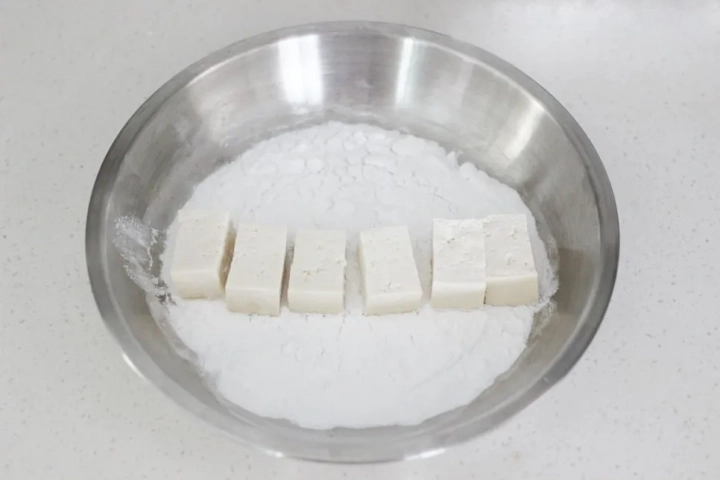 수분 제거한 두부는 전분가루를 골고루 묻혀주세요.