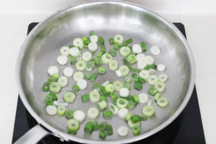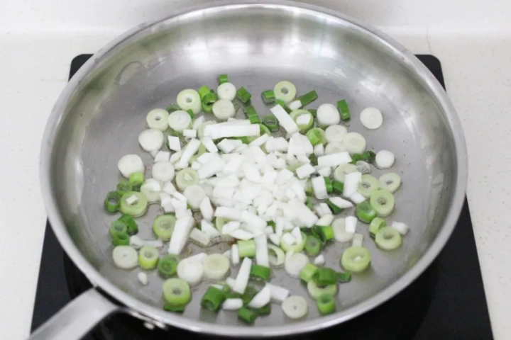 팬에 참치기름이나 식용유를 둘러 대파를 볶아주세요.