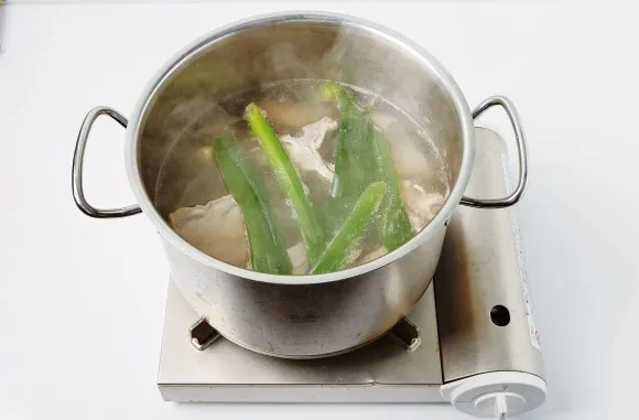 대파 5대, 청양고추 3개, 깻잎 10장, 월계수 4장,