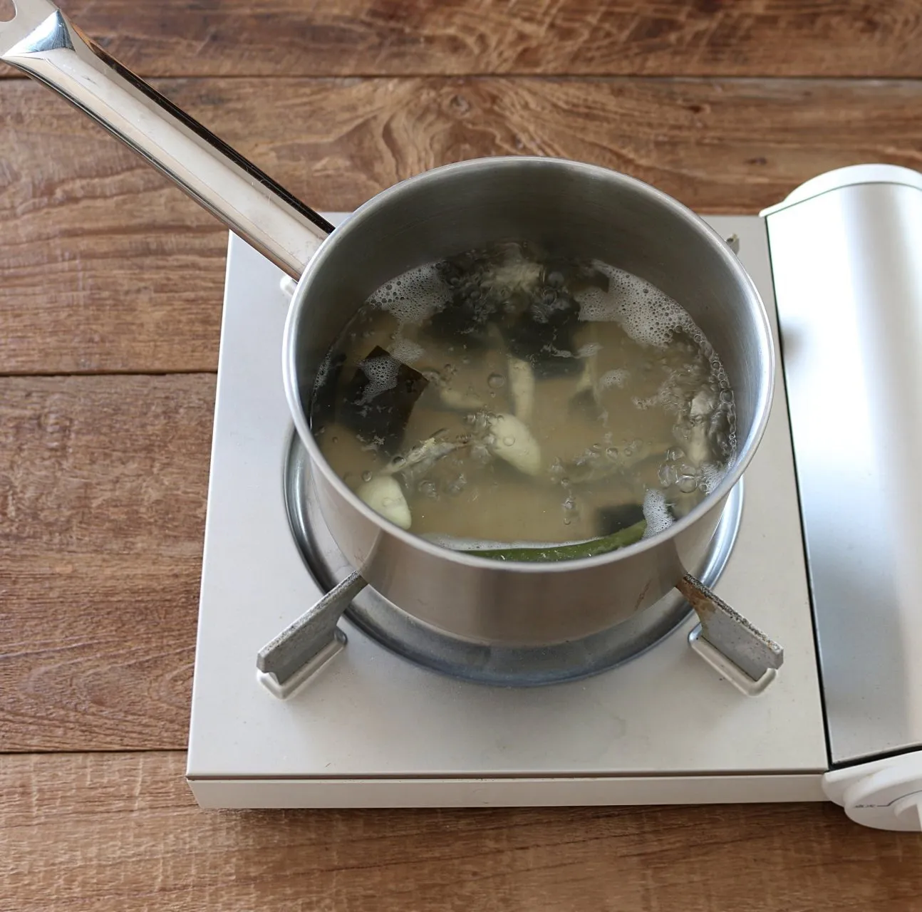 끓어오르면 다시마를 건져내고