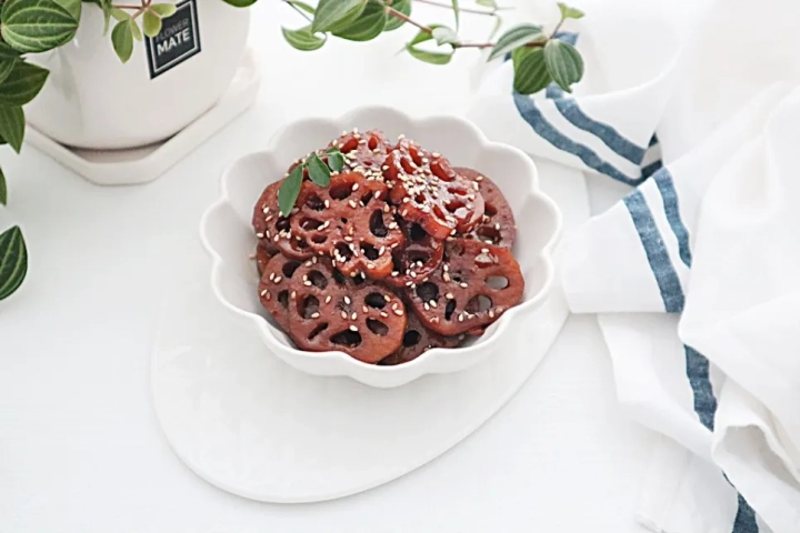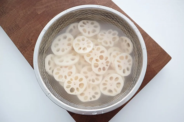 식초물에 담근 연근은 깨끗한 물로 헹궈주고