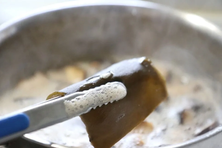 5분 정도 끓여주고 다시마는 건져내주세요.