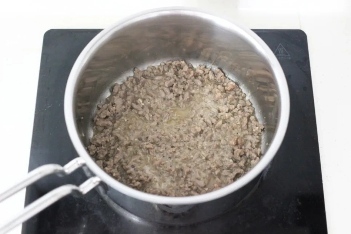 팬에 참기름을 두르고 소고기를 볶아주세요.