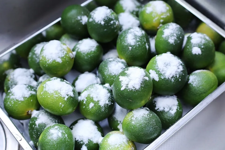 [재료]: 청귤, 베이킹소다, 식초, 설탕